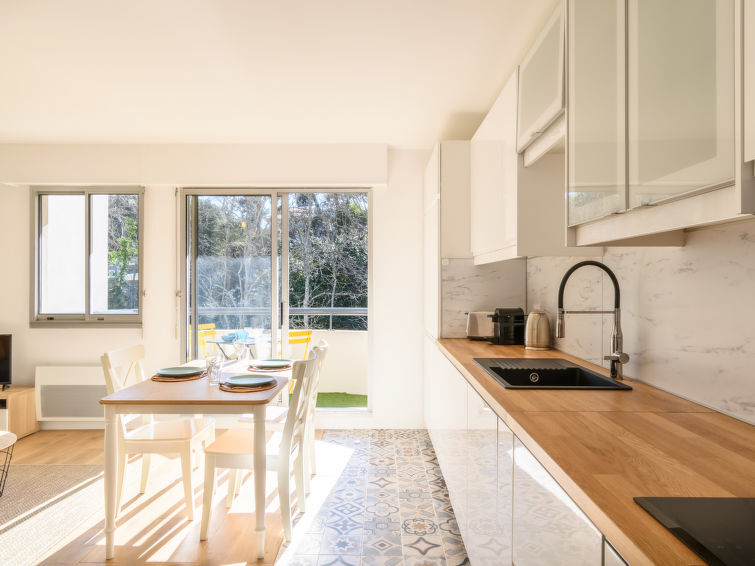 Appartement 2-kamers 36 m2 op de 4e verdieping. Mooi en smaakvol ingericht: woon-/eetkamer met 1 2-pers divanbed (1 x 140 cm, lengte 200 cm), TV (Flatscreen TV). Uitgang naar het balkon. 1 kamer met 1 2-pers bed (1 x 140 cm, lengte 200 cm). Open keuken (afwasmachine, 4 inductiekookplaten, broodrooster, waterkoker, diepvriezer, elektrische koffiemachine, pads voor de koffiemachine (Nespresso) extra, combimagnetron). Douche/WC. Elektrische verwarming. Terras 6 m2, op het zuiden gelegen. Terrasmeubelen. Ter beschikking: wasmachine, strijkijzer, haardroger. Internet (Internet (WiFi), gratis). Rookmelders. Aanbod door een particulier volgens art. 155, IV van CGI. 330090002363D