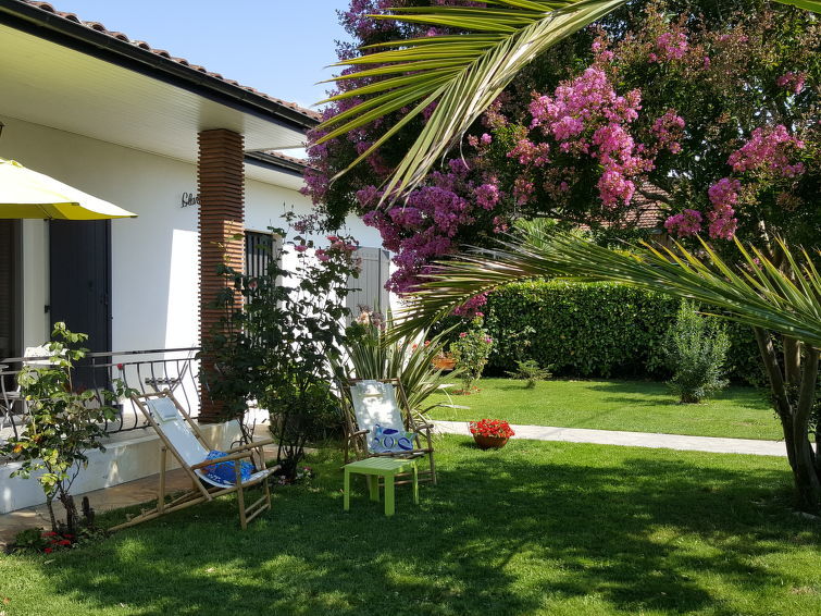 Villa "Glamys". Huurobject bestaande uit hoofd-/ bijgebouw. Voor alleengebruik: terrein 500 m2 (omheind) met gazon en bloemen, openluchtzwembad (6 x 3 m, 135 - 150 cm diepte, seizoensgebonden beschikbaarheid: 01.Mei. - 30.Sep.) met oprolbaar afdekscherm. Poolhouse, terras, overdekte parkeerplaats bij het huis op het terrein. Winkel 850 m, supermarkt 3 km, restaurant 850 m, bushalte "XIV juillet" 150 m, zandstrand "Le Grand Crohot" 12 km. Attracties in de buurt: Plage Arès sur le Bassin d'Arcachon 100 m. De omgeving is gevoelig voor geluidsoverlast. Gelieve geen lawaai te maken en de rust te bewaren.
