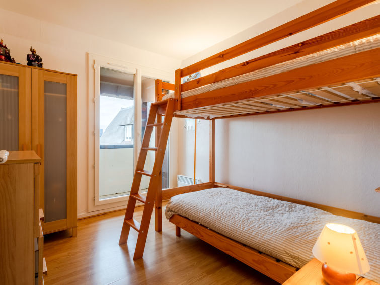 Appartement 3-kamers 47 m2 op 2 verdiepingen op de 3e verdieping. Het objekt is geschikt voor 2 volwassenen + 2 kinderen. Woon-/eetkamer met TV (Flatscreen TV), elektrische verwarming. Uitgang naar het balkon. 1 kamer met 1 x 2 stapelbedden (90 cm, lengte 190 cm). Uitgang naar het balkon. Keuken (2 keramische glas kookplaten, broodrooster, waterkoker, diepvriezer, elektrische koffiemachine, combimagnetron). Badkamer, aparte WC. Elektrische verwarming. Bovenverdieping: 1 kamer met 1 2-pers bed (140 cm). Uitgang naar het terras. Balkon 1 m2, op het westen gelegen, terras 10 m2, op het westen gelegen. Terrasmeubelen. Uitzicht op het landschap. Ter beschikking: haardroger. Internet (Internet (WiFi), extra). Parkeerplaats. Niet rokers woning. Rookmelders.