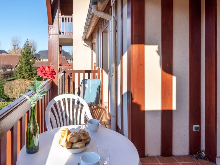 Deauville: Mooi residentie "Domaine de Clairefontaine". In de plaats, 1.4 km van het centrum, rustige ligging, 900 m van zee, 900 m van het strand. Voor medegebruik: openluchtzwembad hoekig verwarmd, omheind (6 x 15 m, seizoensgebonden beschikbaarheid: 01.Jun. - 30.Sep.). Douche/WC bij het zwembad, kinderzwembad, tennisbaan. In het complex: solarium, lift. Winkel, levensmiddelenwinkel 800 m, supermarkt 900 m, restaurant 800 m, bushalte "Avenue des courses" 200 m, treinstation "Deauville-Trouville" 1.8 km, overdekt zwembad 1.2 km, thermaalbad "Deauville" 1.2 km. Golfterrein (18 holes) 2.8 km, manege 1.6 km. Attracties in de buurt: Hippodrome Deauville-La Touques 1 km, Centre International Deauville - CID 1.4 km, Mémorial de Caen 50 km, Plage du débarquement d'Arromanches 84 km. De sleuteloverdracht vindt plaats bij het agentschap Interhome in Deauville.