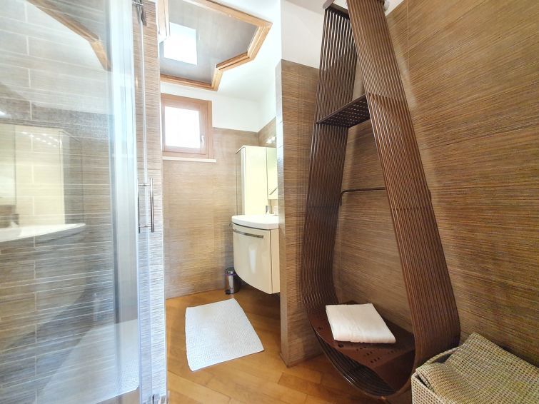 Appartement 2-kamers 88 m2 op de 2e verdieping. Luxueus en met veel hout ingericht: woon-/eetkamer met afgeschuinde daken, hoogte van het plafond 300 - 360 cm met 1 2-pers divanbed en Sat-TV (Flatscreen TV), stereo-installatie, DVD en air-conditioning. 1 open 2-pers. kamer met afgeschuinde daken, hoogte van het plafond 165 - 315 cm met TV (Flatscreen TV), air-conditioning. Keuken (4-pits kookplaat, oven, afwasmachine, broodrooster, magnetron, elektrische koffiemachine) met eettafel, TV (Flatscreen TV). Douche/bidet/WC. Verwarming, air-conditioning, heteluchtverwarming (extra). Verwarming alleen beschikbaar van 01.12. tot 31.03. Parketvloeren. Ter beschikking: wasmachine, droger, telefoon, strijkijzer, kinderstoel, kinderbed tot 2 jaar (extra), haardroger. Internet (Internet (WiFi), gratis). Rookvrij huis. Rookmelders, brandblusser, geen lift. IT088006C26DU7NUZM