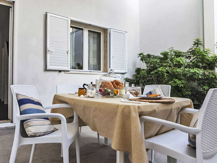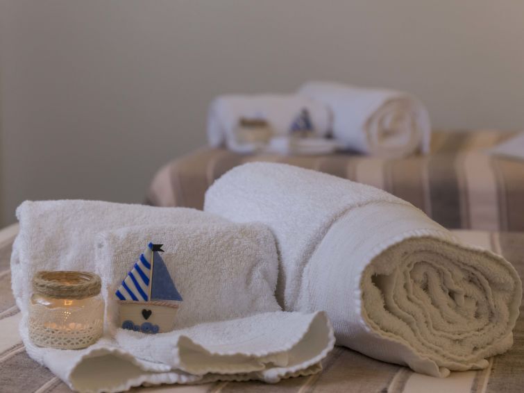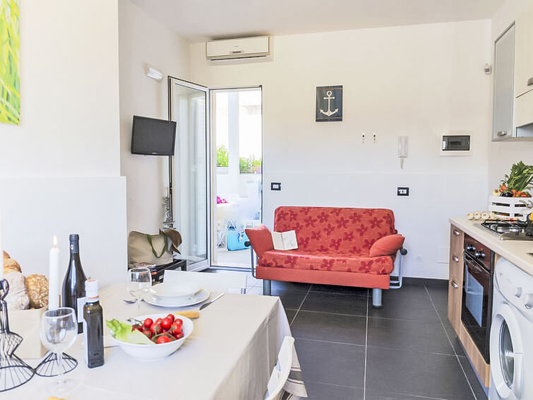 "Brezza", appartement 3-kamers 45 m2, op de begane grond. Doelmatig en modern ingericht: woon-/eetkamer met 1 divanbed (120 cm), TV (Flatscreen TV), air-conditioning en heteluchtverwarming. Uitgang naar de zitplaats in de tuin. 1 2-pers. kamer met ventilator. 1 kamer met 2 bedden. Kookhoek (4-pits kookplaat, oven). Douche/bidet/WC. Verwarming, heteluchtverwarming. Verwarming alleen beschikbaar van 01.12. tot 31.03, Verwarming niet in alle ruimtes. Terras 15 m2 gedeeltelijk overdekt. Terrasmeubelen. Ter beschikking: wasmachine, strijkijzer, kinderstoel, kinderbed tot 2 jaar (extra), haardroger. Internet (Internet (WiFi), gratis). Maximaal 1 huisdier/hond toegestaan. Rookmelders, brandblusser. IT088011B4P9II83MS