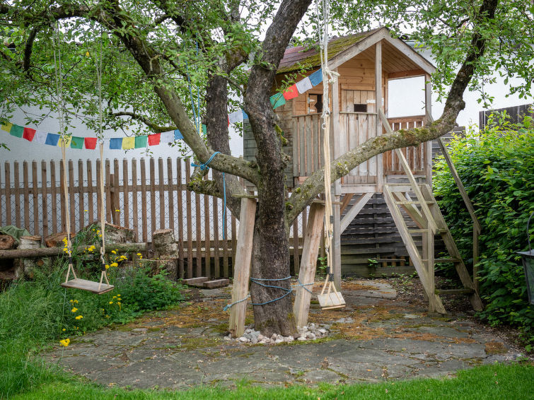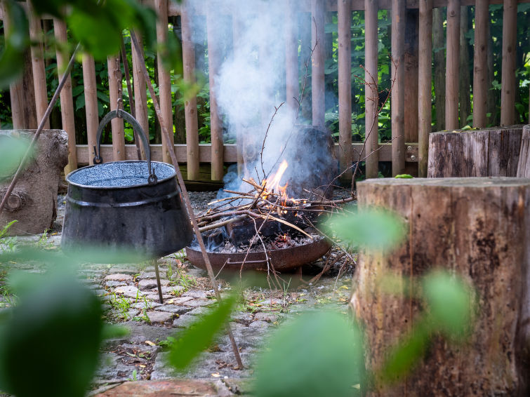 Chalet 4-kamers 120 m2 op 3 verdiepingen. Rustiek en gezellig ingericht: woon-/eetkamer met 1 divanbed, eethoek, Sat-TV, video, radio en tegelkachel. Uitgang naar de zitplaats in de tuin. Kleine, open keuken (4-pits kookplaat, oven, magnetron). Douche/WC. Bovenverdieping: (buitentrap), 2 kamers, elke kamer heeft 1 divanbed, 1 2-pers bed en Sat-TV. Douche/WC. Zolderverdieping: (buitentrap), 1 kamer met 1 divanbed, 1 2-pers bed, wastafel, aparte WC en Sat-TV. Balkon, zithoek in de tuin. Terrasmeubelen, ligstoelen. Mooi uitzicht op het landschap. Maximaal 2 huisdieren/honden toegestaan. Let op: steile buitentrap. Door het behoud van het originele karakter van het huis zijn zowel de deurposten als de hoogte van de ruimtes laag.