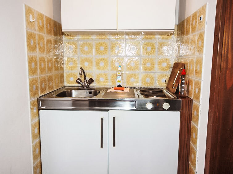 Studio 1-kamer 20 m2 op de 1e verdieping. Zeer eenvoudig ingericht: woon-/eetkamer met 1 2-pers bed en Kabel-TV. Kookhoek (2-pits kookplaat). Douche/WC. Elektrische verwarming. Niet rokers woning. 50620-000072-2020