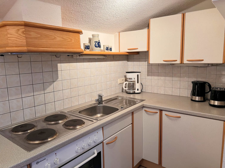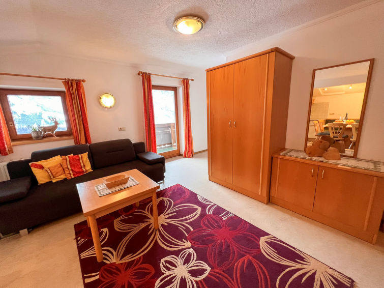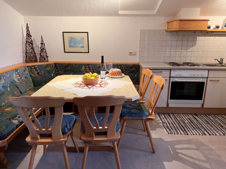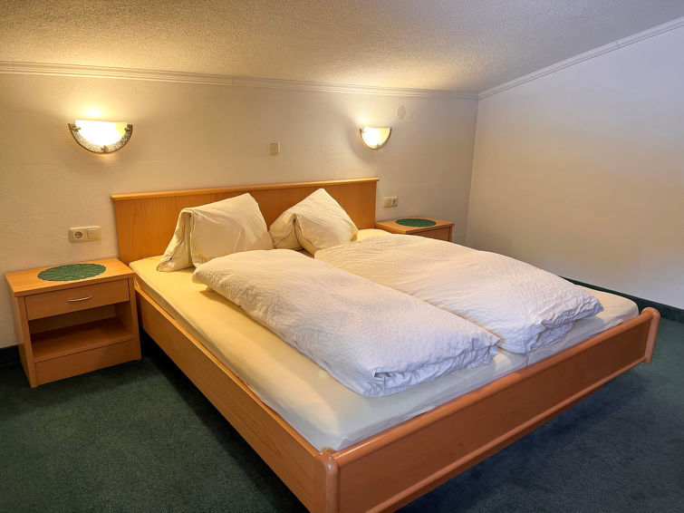 "Top 2", appartement 4-kamers 80 m2 op de 2e verdieping. Ruim en licht, gedeeltelijk afgeschuinde daken, gezellig en met veel hout ingericht: 2e Verdieping: hal. 2 2-pers. kamers. 1 2-pers. kamer met douche/WC. Woonkeuken (4-pits kookplaat, oven, broodrooster, waterkoker, elektrische koffiemachine) met eethoek, Sat-TV, internationale TV-zenders en Flatscreen TV. Uitgang naar het balkon. Douche, aparte WC. Vloerbedekking. Groot balkon. Balkonmeubilair. Mooi panoramazicht op de bergen en het landschap. Ter beschikking: Internet (Internet (WiFi), gratis). Niet rokers woning. Rookmelders. 50613-000400-2020