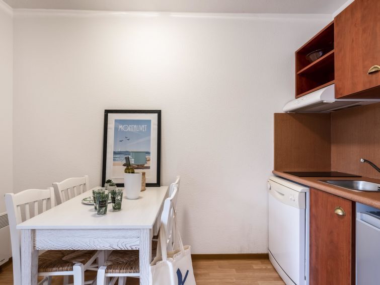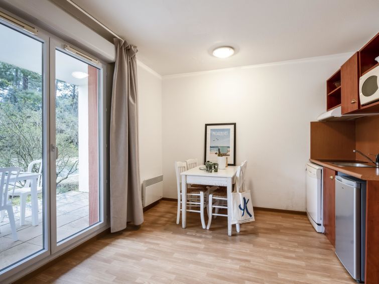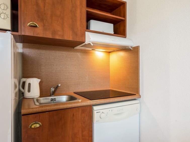 "Les Alcyons Studio Cabine", studio 1-kamer 27 m2. Het objekt is geschikt voor 2 volwassenen. Doelmatig ingericht: woon-/slaapkamer met 1 divanbed (140 cm, lengte 190 cm), eettafel en TV (Flatscreen TV). Uitgang naar het balkon, naar het terras. Slaapnis met 2 bedden (80 cm, lengte 190 cm). Kookhoek (afwasmachine, 2 keramische glas kookplaten, waterkoker, magnetron, elektrische koffiemachine). Bad/WC. Elektrische verwarming. Balkon of terras overdekt. Terrasmeubelen. Ter beschikking: kinderstoel, kinderbed. Niet rokers woning. Maximaal 1 huisdier/hond toegestaan. Rookmelders. In plaats van een afgesloten slaapkamer bevinden sommige slaapgedeeltes zich in een open ruimte (galerij, nis, etc.).