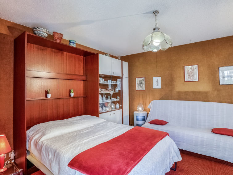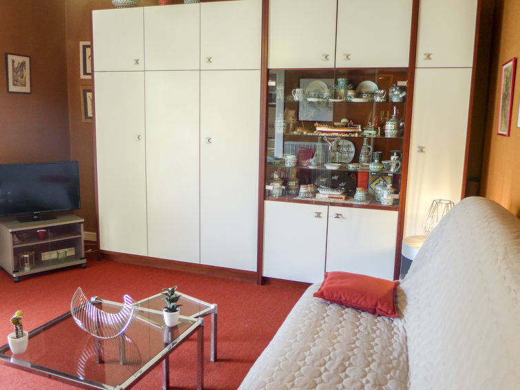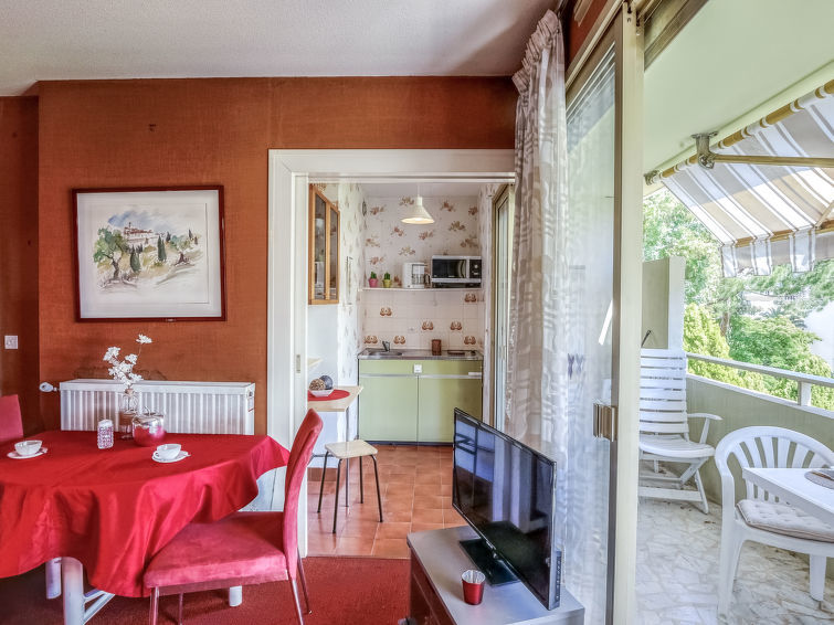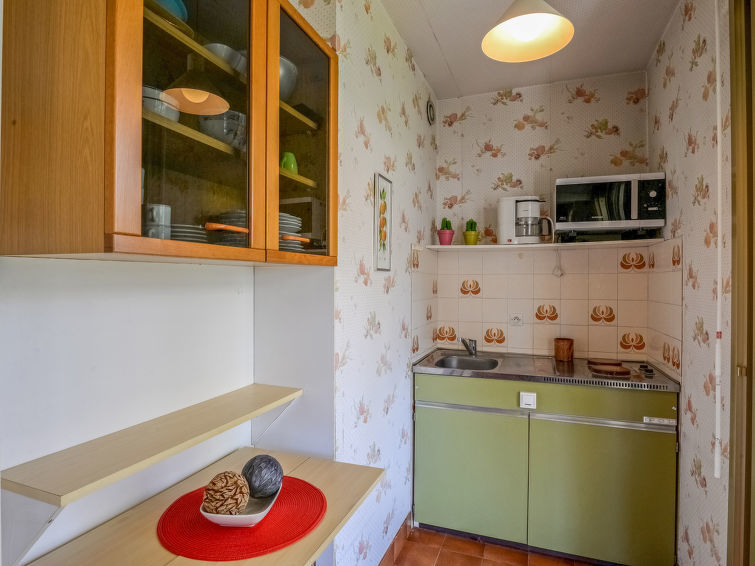 Appartement 1-kamer 25 m2 op de 1e verdieping. Eenvoudig ingericht: woon-/eetkamer met 1 2-pers divanbed (1 x 140 cm, lengte 190 cm), TV (Flatscreen TV). Uitgang naar het terras. Kookhoek (2-pits kookplaat, waterkoker, magnetron, elektrische koffiemachine). Uitgang naar het terras. Douche/WC. Verwarming. Groot terras 11 m2, op het zuiden gelegen. Terrasmeubelen. Ter beschikking: Internet (Internet (WiFi), extra). Garage (1 Auto). Parkeerplaats alleen voor een kleine auto. Rookmelders. 06027028471DP