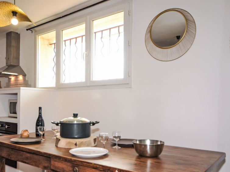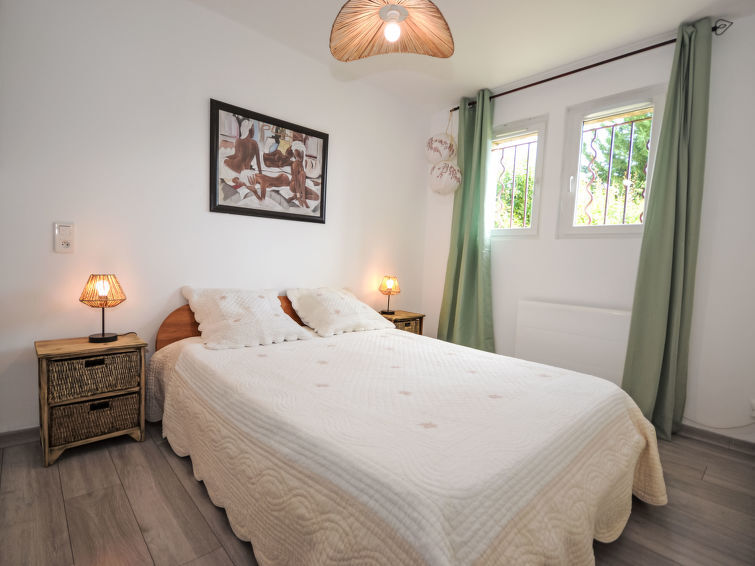 "Les Santons", appartement 3-kamers op de begane grond, op het westen gelegen. Licht, gerenoveerd in 2025, mooi en smaakvol ingericht: woon-/eetkamer met TV, internationale TV-zenders en air-conditioning. Uitgang naar het terras. 1 kamer met 1 2-pers bed (160 cm, lengte 200 cm). 1 kamer met 1 uitschuifbaar bed (2 pers. 2 x 90 cm, lengte 190 cm), air-conditioning. Uitgang naar de zitplaats in de tuin. Open keuken (4-pits kookplaat, oven, afwasmachine, magnetron, diepvriezer, elektrische koffiemachine) met air-conditioning. Aparte WC, bad of douche. Elektrische verwarming. Natuurstenen vloeren. Terras 35 m2. Ter beschikking: wasmachine, kinderstoel, kinderbed. Internet (WiFi, gratis). Parkeerplaats (omheind, 2 Auto's). Rookmelders. Aanbod door een particulier volgens art. 155, IV van CGI.
