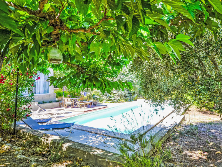 Gargas 4 km van Roussillon: Eengezinswoning "Les Iris", bouwjaar 1989, gerenoveerd in 2014. Buiten de plaats. Voor alleengebruik: terrein 1.300 m2 (omheind), openluchtzwembad beveiligd (10 x 4 m, 80 - 150 cm diepte, seizoensgebonden beschikbaarheid: 01.Mei. - 30.Sep.) met trap. Parkeerplaats op het terrein. Carport. Winkel 2 km, levensmiddelenwinkel 2 km, restaurant 2 km, bushalte "Avenue de Lançon" 3 km. Auto noodzakelijk. Afdak voor 1 auto. Garage alleen bestemd voor motoren en fietsen.