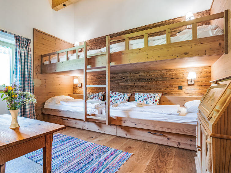 "Orleans 1", appartement 5-kamers 147 m2 op de 1e verdieping. Ruim en licht, zeer comfortabel en smaakvol ingericht: hal. Souterrain: douche, aparte WC, Sauna. Bovenverdieping: groot, open woon-/eetkamer met zwedenkachel, eethoek, Sat-TV, internationale TV-zenders en Flatscreen TV. Uitgang naar het balkon. 2 2-pers. kamers, elke kamer heeft douche/WC. Uitgang naar het balkon. 1 2-pers. kamer met bad/douche/WC. Uitgang naar het balkon. 1 kamer met 2 x 2 stapelbedden. Groot woonkeuken (oven, afwasmachine, 4 keramische glas kookplaten, broodrooster, waterkoker, magnetron, diepvriezer, elektrische koffiemachine). Parketvloeren, natuurstenen vloeren. Comfortabele inrichting in landelijke stijl. Groot balkon. Balkonmeubilair. Zeer mooi panoramazicht op de bergen en het landschap. Ter beschikking: strijkijzer, kinderstoel, kinderbed tot 2 jaar, haardroger. Internet(WiFi), gratis). Rookvrij huis. Rookmelders, brandblusser. 50612-000971-2020